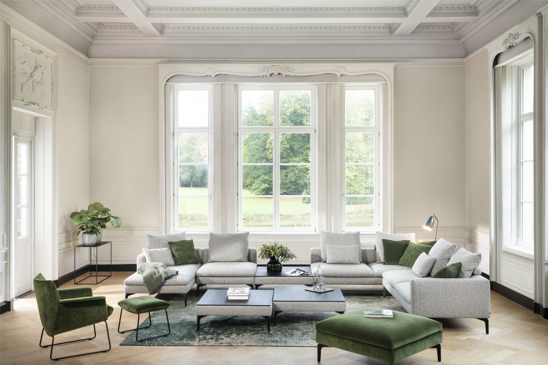 Pure vormgeving, tijdloos ontwerp. Stijlvolle sofa met rechte contouren en fijn potengestel. Zijn nonchalante kussenspel nodigt uit tot eindeloos genieten. Hedendaagse vormgeving met een hoog loungegehalte. Zitcomfort wordt een esthetisch feest. Bekroond met de German Design Award.