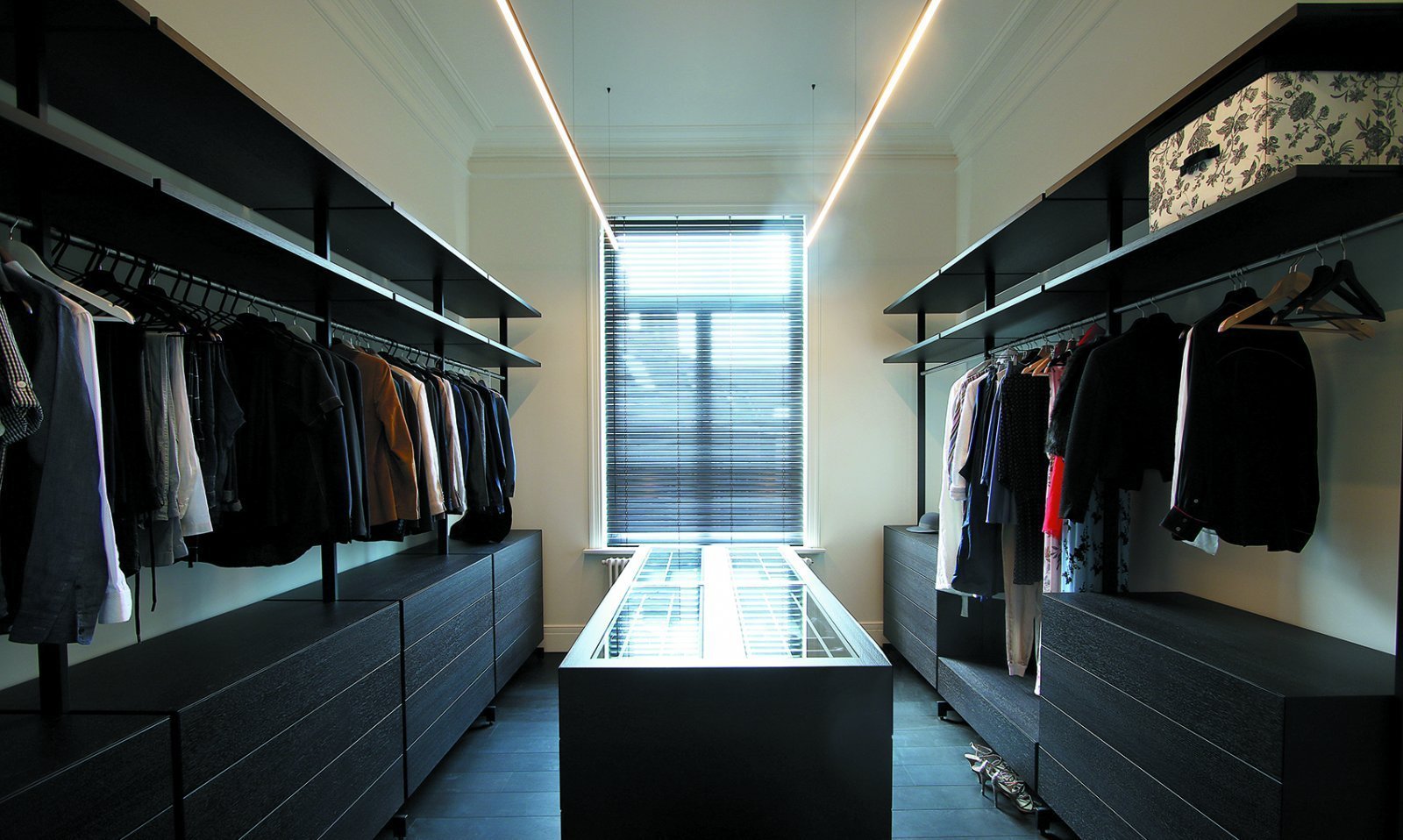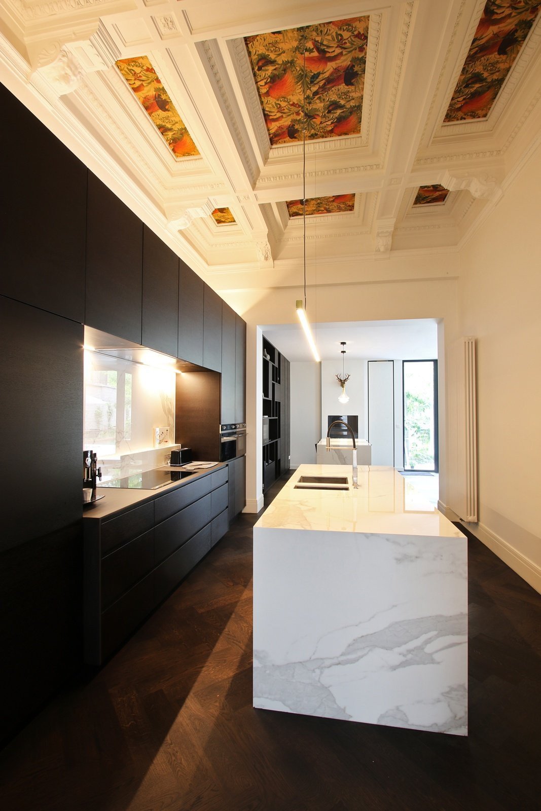 In het hartje van de stad mocht Luxor dit riante, 5 verdiepingen hoge, herenhuis inrichten. De complete woning krijgt een moderne invulling maar in de bar wordt de ambacht van het stofferen, zandstraal en lakwerk ideaal ten toon gebracht.