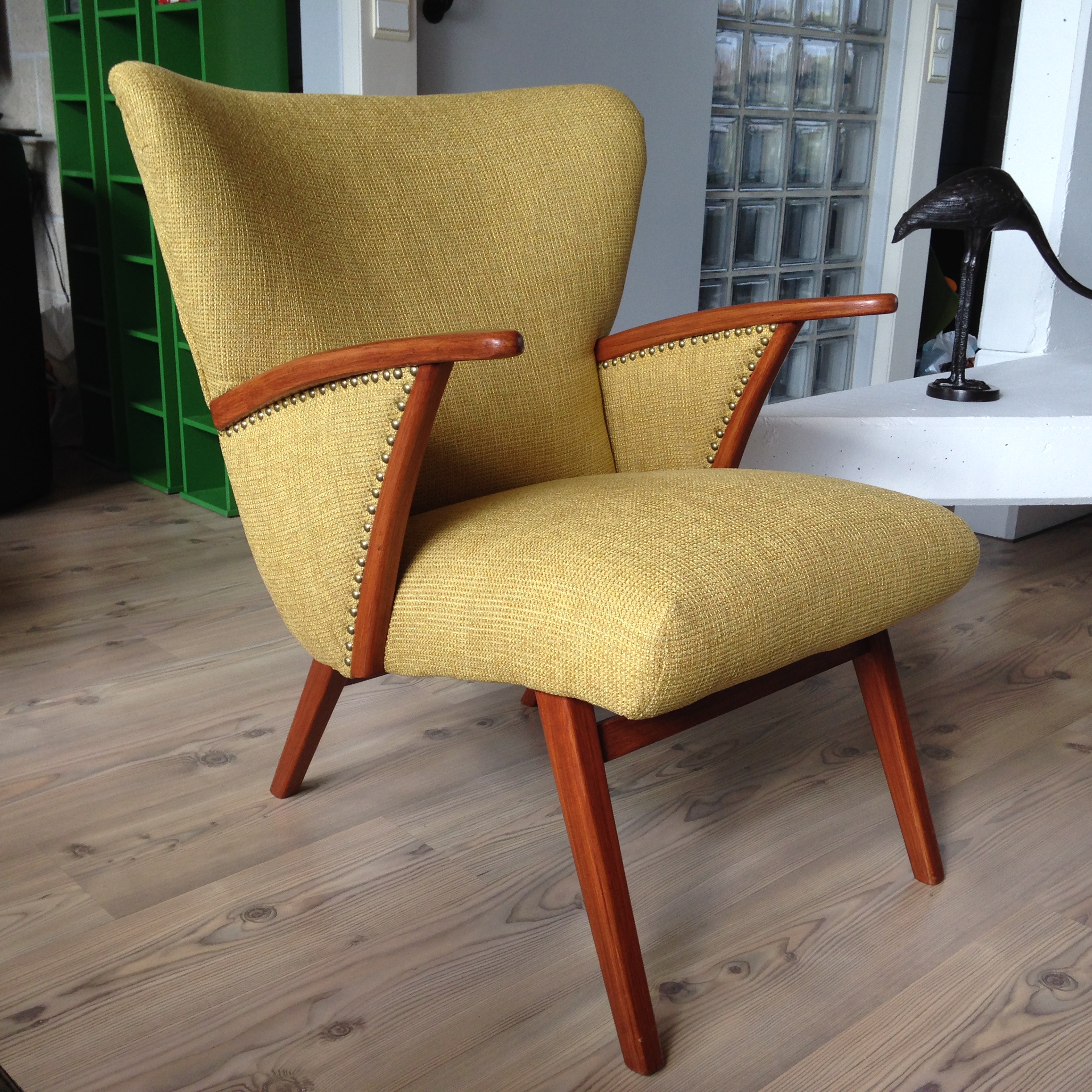 Vandaag werd ons vintage-zeteltje , dat we aankochten voor de luttele prijs van 20€, terug thuis gebracht na dat het werd geherstoffeerd door de firma Luxor. Wij kregen goede raad vanwege Michael Selter die langskwam met stofstalen. Na nog eens langs te gaan in de toonzaal en definitief onze stofkleur vast te leggen, zijn we nu de trotse eigenaars van een opgewaardeerd vintage-meubeltje. Het straalt als een zonnetje in ons interieur. Hierbij enkele foto's van voor en na. Dikke proficiat voor het vakmansschap!
